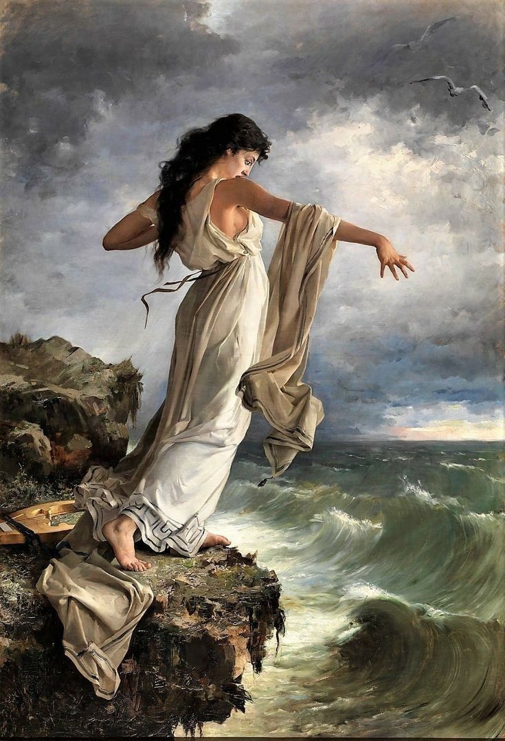 Sappho (c. 610–c. 570 BCE), the Greek poet from Lesbos. And yes, this is where the word “lesbian” comes from. You can thank Sappho’s poetry for this. You can also thank her if you’ve been in women’s circles, called thiasos, where women practiced arts that empowered their true nature — LOVE — adoring Aphrodite in ritual. From these experiences and writings arose the “sapphic” style — which entails love between women. In my view, Sappho loved women, and why wouldn’t she? Women are the most beautiful, divine representation of nature. Her words unite divine love and carnal love; when currents of love rise in women’s circles we remember our oneness. If I love myself, the world, and other women, it’s all the same current.